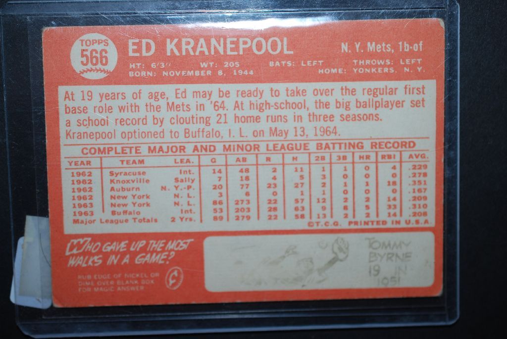 1964 MLB Ed Kranepool New York Mets Baseball Trading Card; EST. $5-10