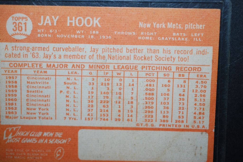 1964 MLB Jay Hook New York Mets Baseball Trading Card; EST. $5-10