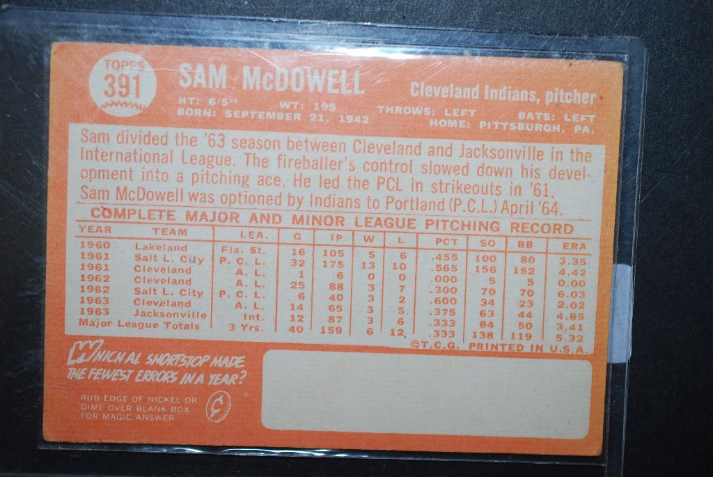 1964 MLB Sam McDowell Cleveland Indians Baseball Trading Card; EST. $5-10