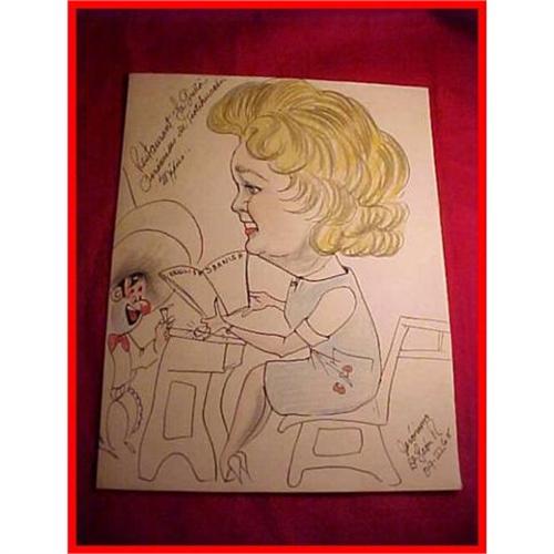 This 12-3/4" by 10" original pen/crayon character drawing was done in 1964 at a Mexican restaurant. The female patron of the restaurant is sitting on a bench and reading the English/Spanish menu. Is this patron a famous person? You be the judge! Signed and dated by the artist(SEE PHOTO). This drawing is unframed and will be ship between two flat cardboard sheets. No major damage with slight staining. A nice signed drawing with a Latin flavor.
