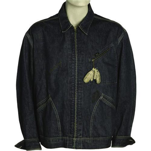 <B>1964 Muhammad Ali "Bear Huntin'" Bundini Brown Worn Jacket.</B></I> A blue denim jacket once played prominently in the early history of the great Ali, whose mentor and motivator Bundini Brown wore it on several occasions in November of 1964 as the date of the famous Sonny Liston rematch approached. The brash young Champion, who had an identical jacket, stalked Liston at his training grounds, letting "The Big Bear" know that he was after him as he marched the streets with a bear collar in hand and the jacket, with embroidered "Bear Huntin'," on his back. Dangling from the chest of each jacket, and clearly visible in several news photos from the time, were miniature white boxing gloves with the handwritten words "The Big Fight, Miami Beach 1964." The jacket shows fine wear from this exciting time in boxing history, with "Lee [size] 48" tagging inside collar. A perfect gold sharpie signature from Ali resides on the chest. <I>LOA from Craig Hamilton / JO Sports.</B></I> <BR><BR><B>Important notice:</B> Heritage usually auctions material at the rate of 200-250 lots per hour. On some occasions eBay Live bid software or the Internet may not be able to keep up with the pace of the auction. We recommend placing a realistic absentee bid now as insurance to avoid disappointment. Occasionally the auctioneer may eliminate or reject an eBay Live bid, and the auctioneer may also reopen a lot after the close of the eBay live bidding (usually because we missed an audience bid), and may reject your bid even if it shows you as the winning bidder. By bidding via eBay Live, you agree that Heritage may award the lot to another bidder at its sole discretion under the circumstances described above or any other reasonable circumstances. Since eBay bids are not shown to us until we open the lot on the floor, we treat those bids just like floor bids. In most cases the floor responds before the eBay bid is presented to us, due to Internet lag time, so for consistency we have made it a policy that floor bids are always considered first over tie eBay live bids. Also please note that all Heritage lots purchased through eBay Live carry a 22.5% Buyer's Premium. Please make sure you read the Terms and Conditions before you bid. This lot is being auctioned in conjunction with a live floor auction by Heritage Galleries & Auctioneers. All final auction and invoice information will be supplied by Heritage Galleries & Auctioneers, and all other information should be considered preliminary. Lot:19163 <BR><BR><B>Winning Notification and Billing:</B> After the FINAL session in this auction is complete, Heritage will send e-mail and snail mail invoices. This process normally takes several days. All final auction and invoice information will be supplied by Heritage Galleries & Auctioneers, and all other information should be considered preliminary. <BR><BR>This auction will be conducted on a live auction floor and over the Internet through eBay Live. If you choose to place an absentee bid, please take a moment to <font color='#0000ff'><u><a href='http://pages.ebay.com/liveauctions/help/before/laabsentee.html'>learn how eBay Live absentee bidding works</a></u></font><font color='#000000'>