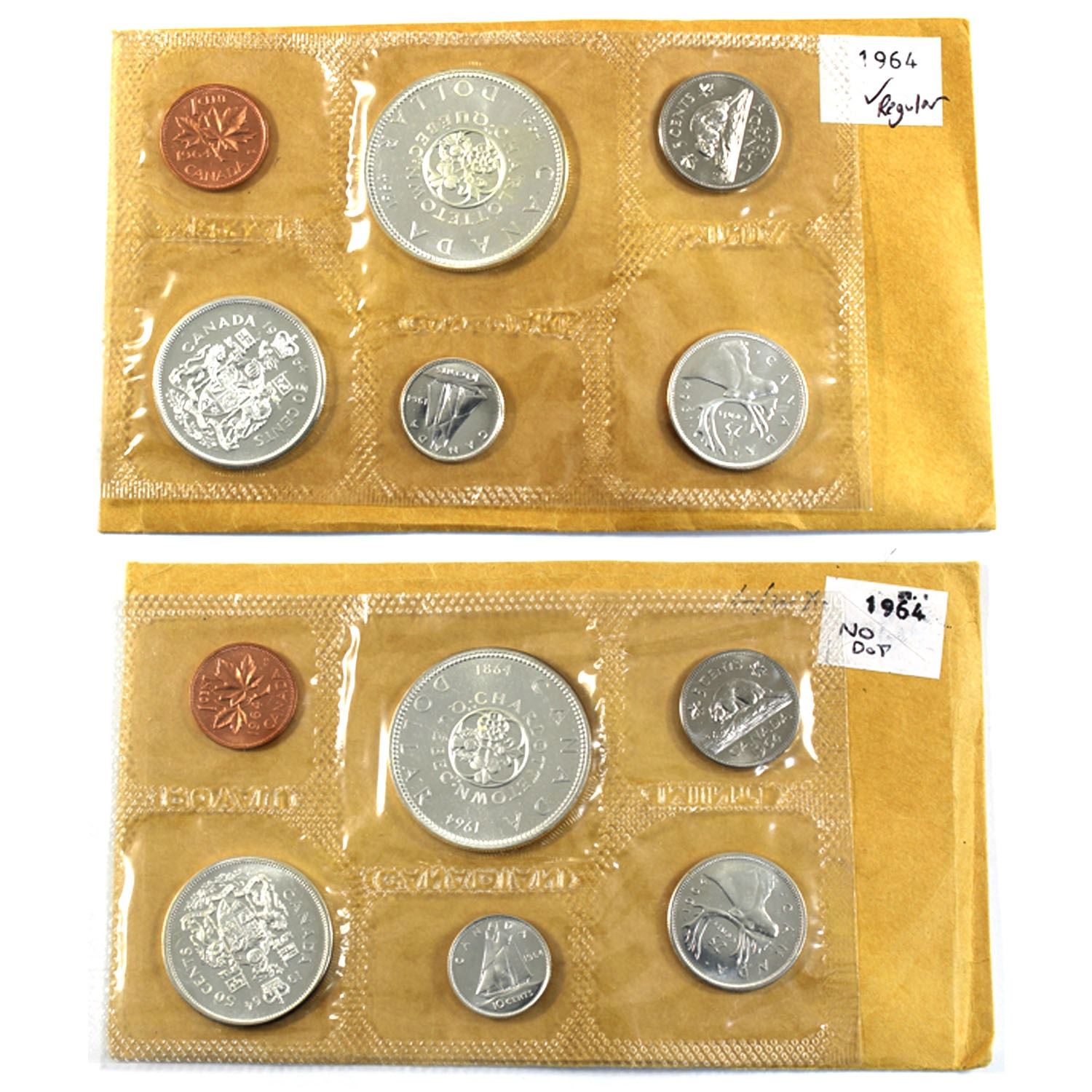 1964 No Dot & 1964 Regular Proof-Like Uncirculated Set in original pliofilm. 2pcs
