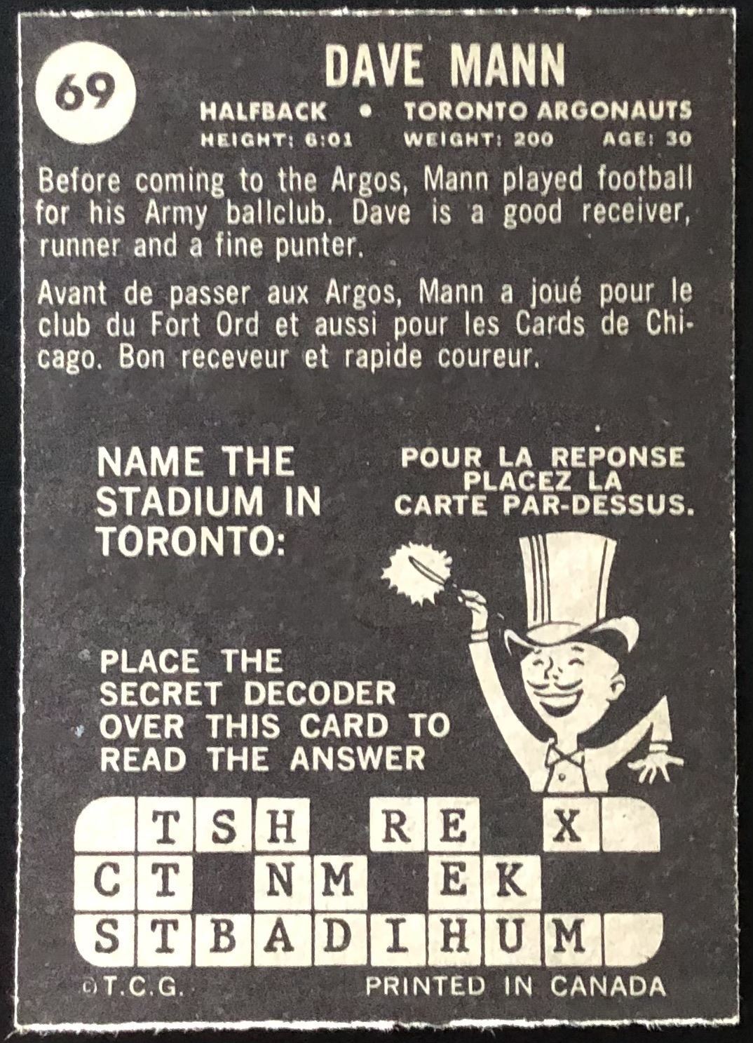 Card #69 vintage, CFL, OPC, football, hall of fame