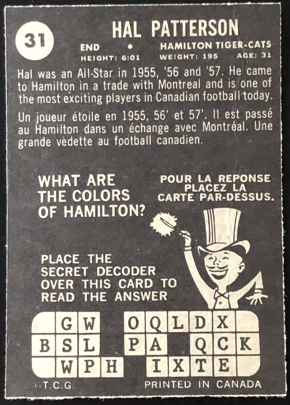 Card #31 vintage, CFL, OPC, football, hall of fame