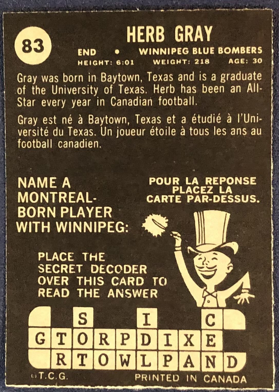 Card #83 CFL, football, OPC, vintage, hall of fame