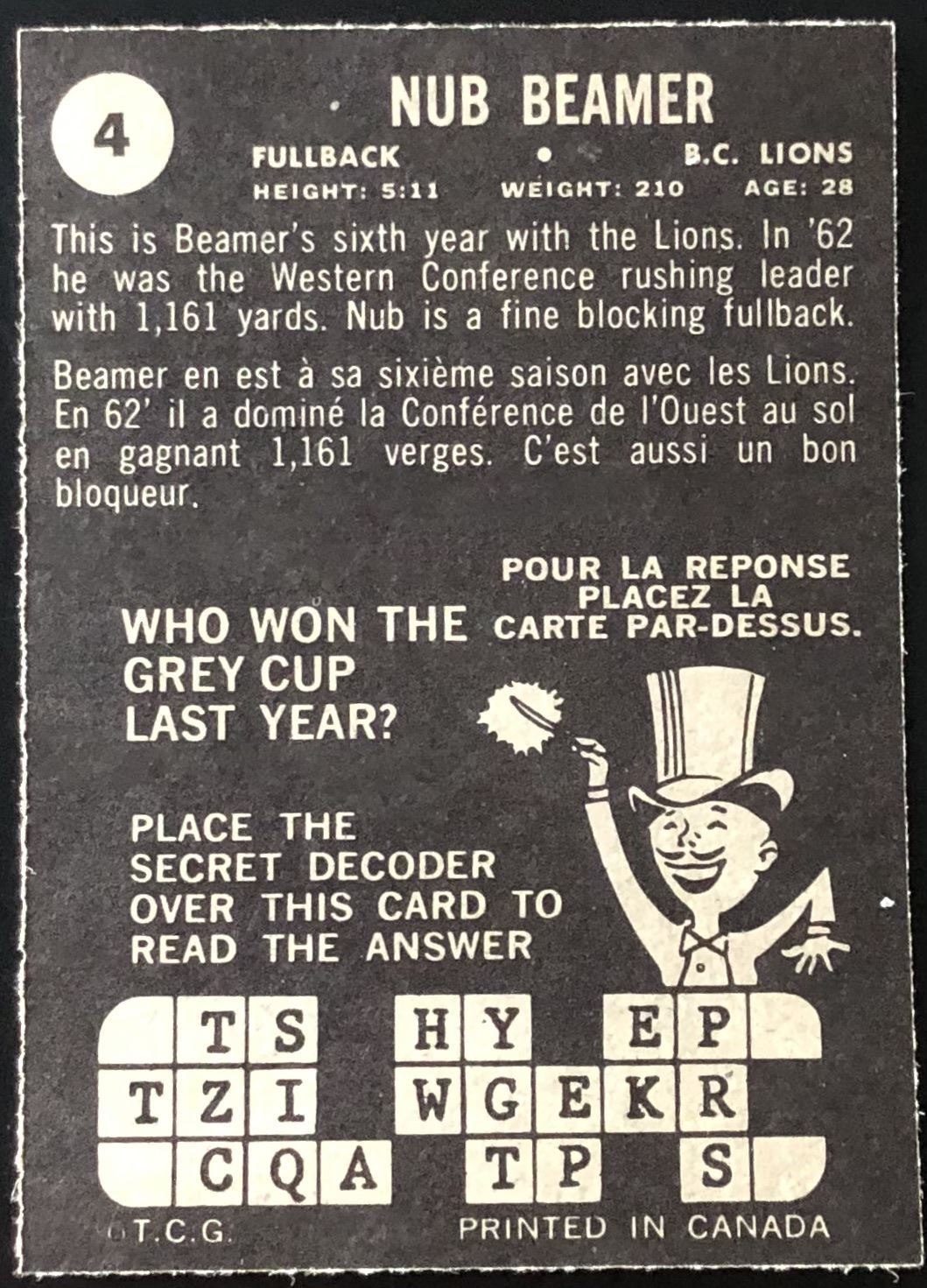 Card #4 vintage, CFL, OPC, football, hall of fame