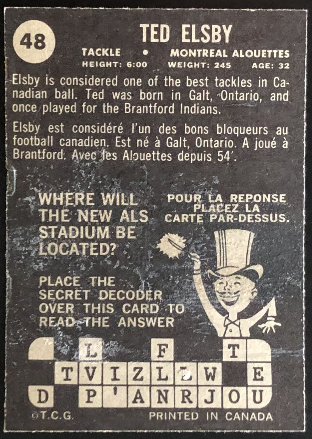 Card #48 vintage, CFL, OPC, football, hall of fame
