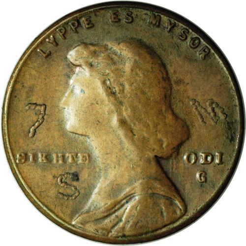 <B>Undated (ca. 1967)<P1C> General Motors Pattern Cent, Pollock-4060, R.5. MS64 Brown NGC.</B></I> An experimental striking on the General Motors roller press with the head of Liberty facing left on the obverse, a wreath on the reverse, and nonsensical devices on each side. Control code 7-M. Struck in copper with a plain edge. Smooth, glossy brown surfaces with some darker color around the devices. Envelope Included.