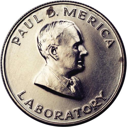 <B>1964<P25C> International Nickel Company Quarter Dollar, Pollock-5380, R.8 (?), MS64 NGC.</B></I> Same design and also struck with a reeded edge. However, this piece is a nickel-silicon composition. Bright and semi-reflective with a small spot on Merica's temple. Envelope Included.