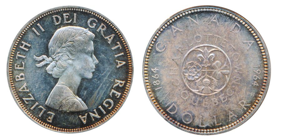 1964. PCGS graded Mint State-65. A gem with light golden toning and a cameo contrast. Excellent ‘eye appeal’.