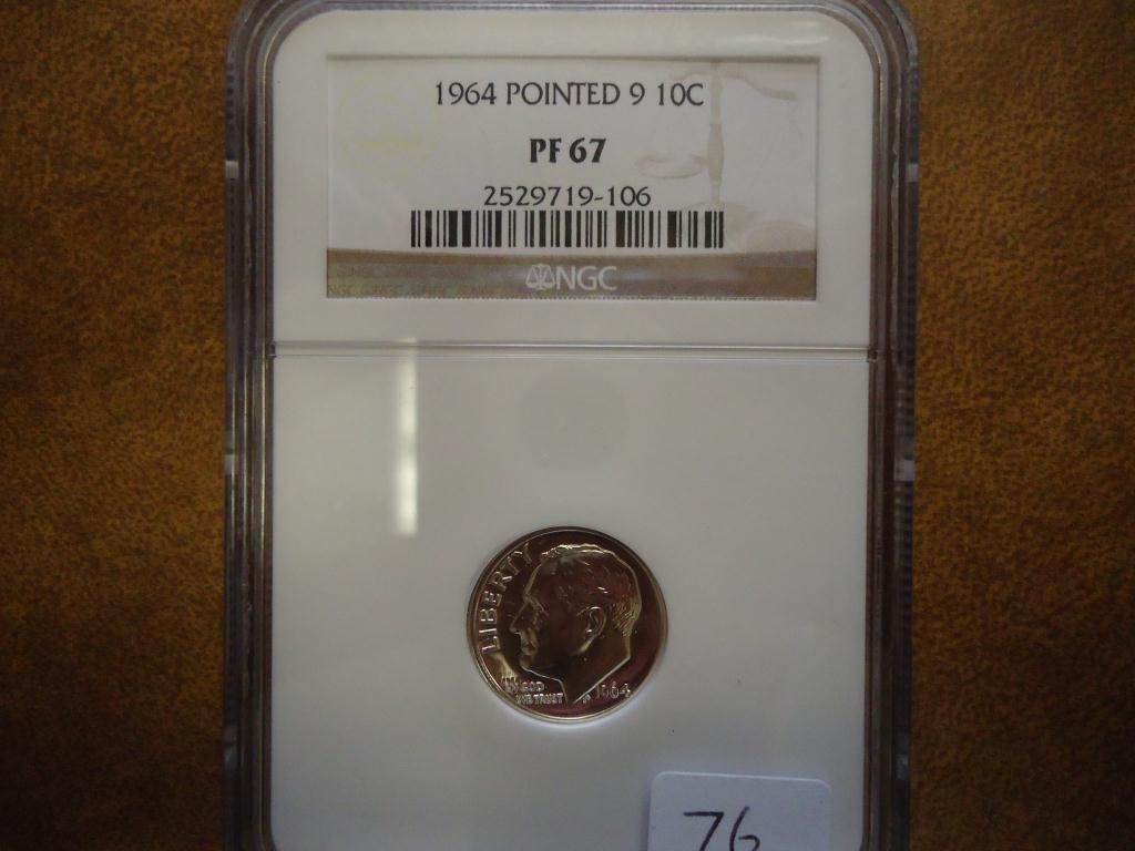 1964 POINTED 9 ROOSEVELT DIME NGC PF67
