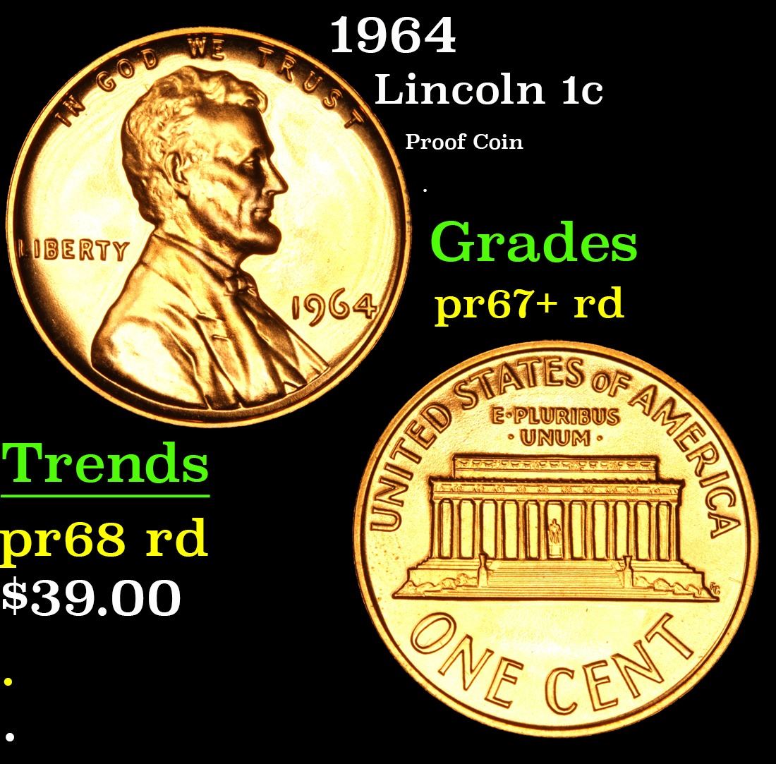 1964 Proof Coin . Lincoln Cent 1c Grades Gem++Proof Red.
