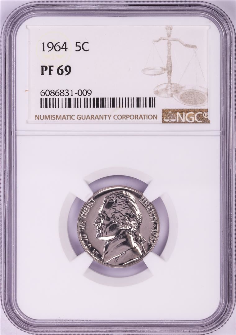 One 1964 Proof Jefferson Nickel Coin NGC PF69. NGC Certified.