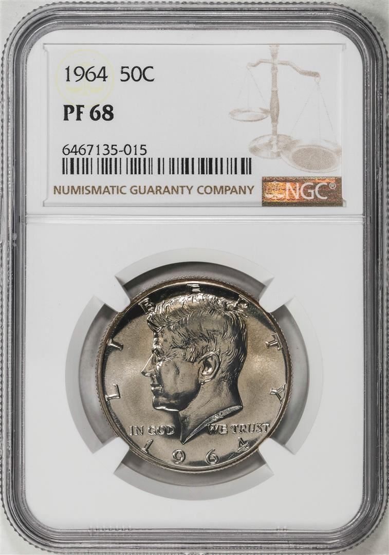 One 1964 Proof Kennedy Half Dollar Coin NGC PF68. NGC Certified.