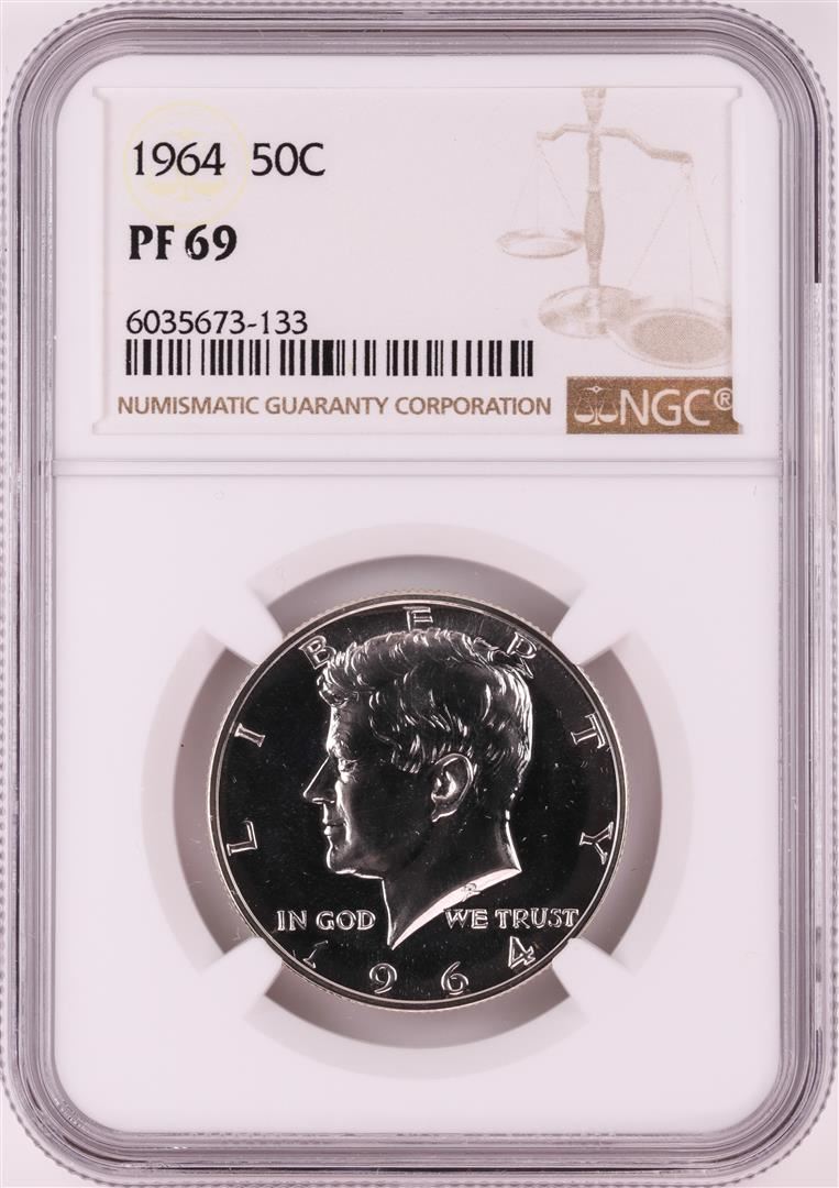 One 1964 Proof Kennedy Half Dollar Coin NGC PF69. NGC Certified.