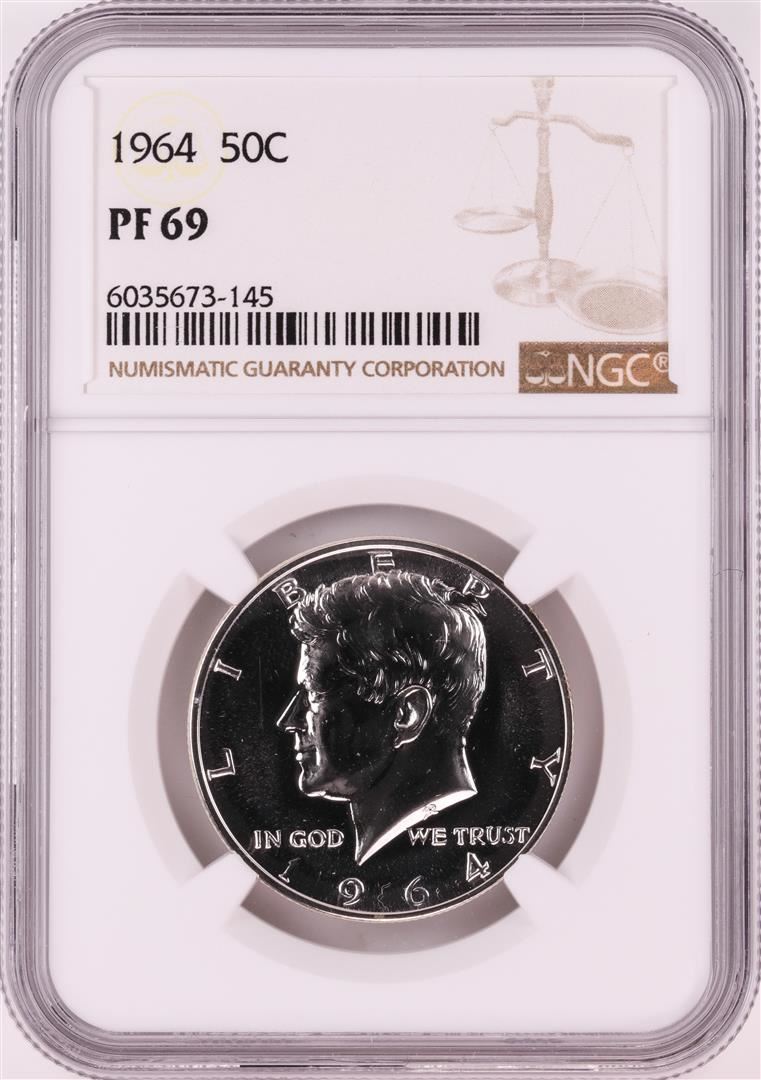 One 1964 Proof Kennedy Half Dollar Coin NGC PF69. NGC Certified.