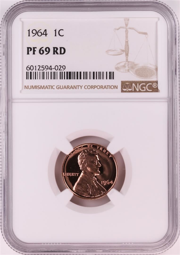 One 1964 Proof Lincoln Memorial Cent Coin NGC PF69RD. NGC Certified.