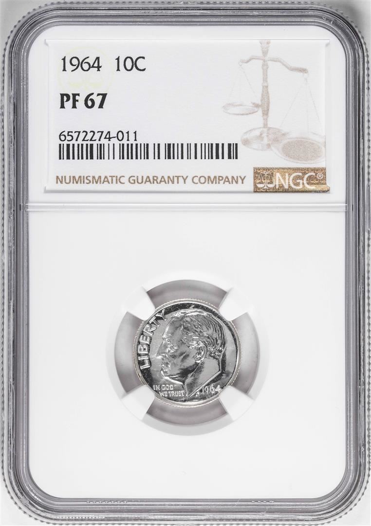 One 1964 Proof Roosevelt Dime Coin NGC PF67. NGC Certified.