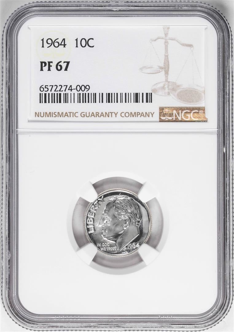 One 1964 Proof Roosevelt Dime Coin NGC PF67. NGC Certified.