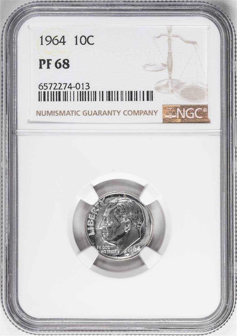 One 1964 Proof Roosevelt Dime Coin NGC PF68. NGC Certified.