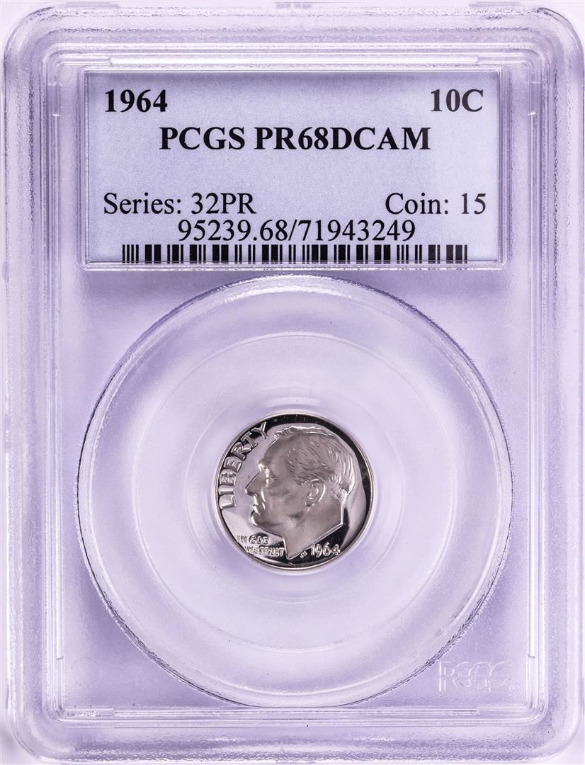 One 1964 Proof Roosevelt Dime Coin PCGS PR68DCAM. PCGS Graded.