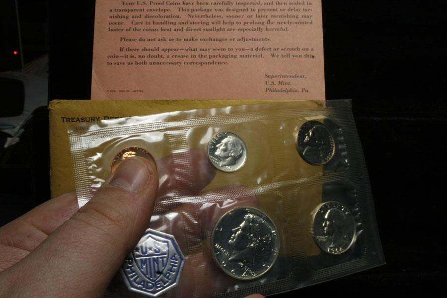 This Set has what I believe is a Cameo Roosevelt Dime, Look at the pictures yourself. It is very hard to tell in the Cellophane. I have seen a lot of Sets and I believe the Dime is Cameo. Also the set, has a 90% Proof Silver Kennedy Half, a 90% Silver Quarter, and 2 Other Proof Coins and as mentioned the 90% Silver Cameo Roosevelt Dime, all in the Original Packaging including The Mint "Memo". Estimated Value $50