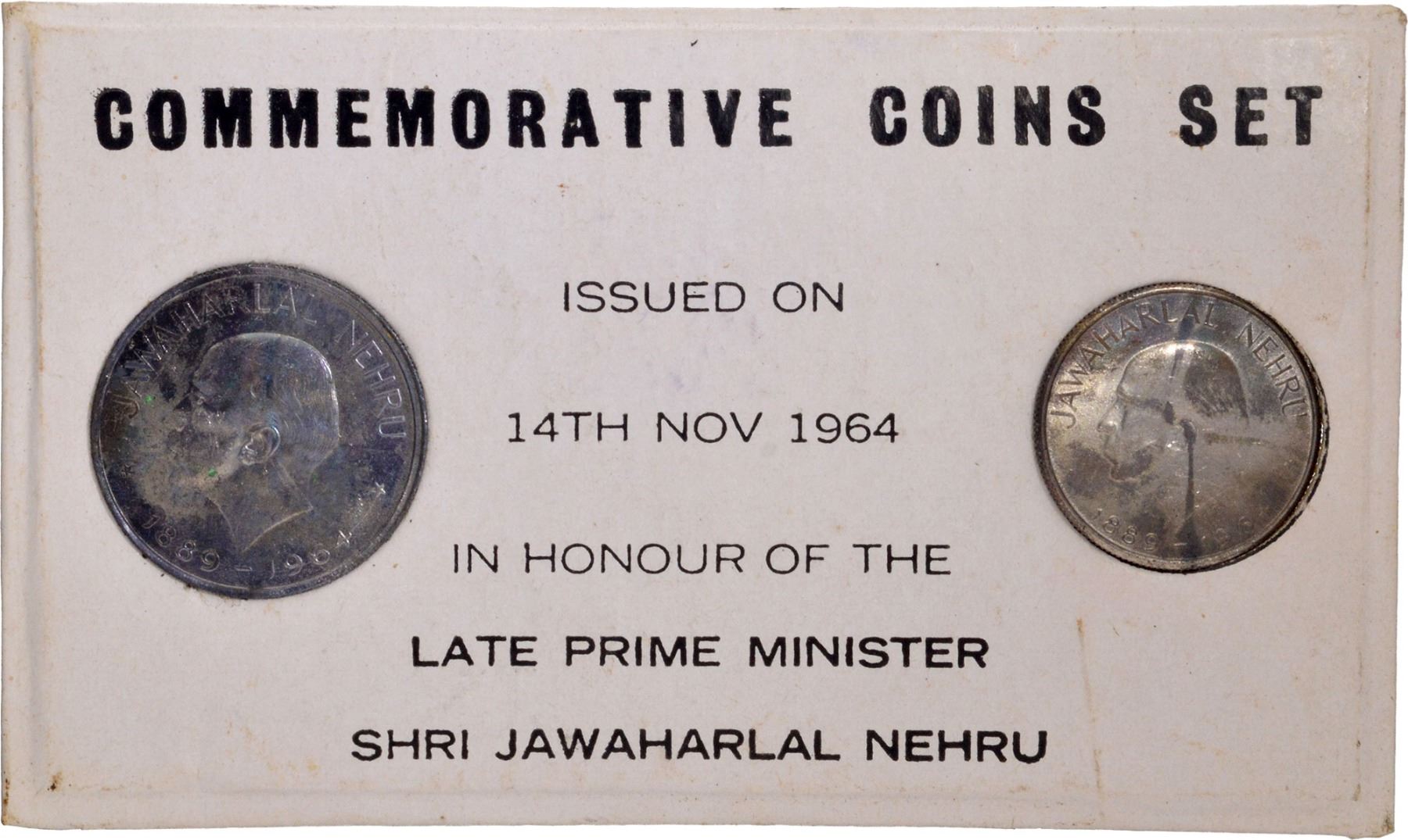 Republic India,1964, Proof Set, Jawaharlal Nehru(1889-1964), Set of 2 Coins, Nickel 50 Paisa and 1 Rupee, Bombay mint, (RB # 8), intact in cardboard packed in I G Bombay Mint black rexine box, superb quality, Proof, Extremely Rare.