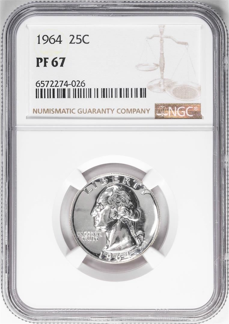 One 1964 Proof Washington Quarter Coin NGC PF67. NGC Certified.