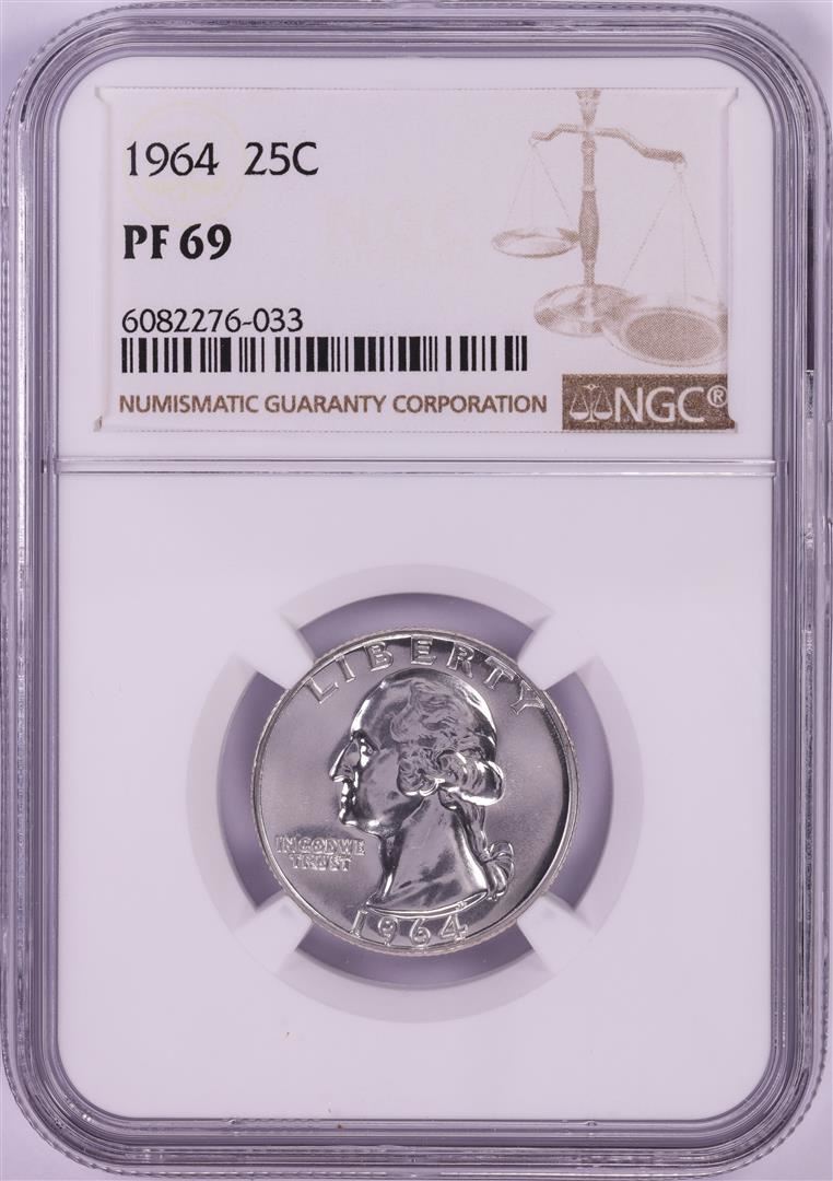 One 1964 Proof Washington Quarter Coin NGC PF69. NGC Certified.