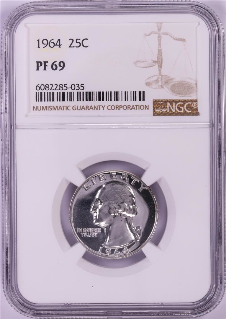 One 1964 Proof Washington Quarter Coin NGC PF69. NGC Certified.