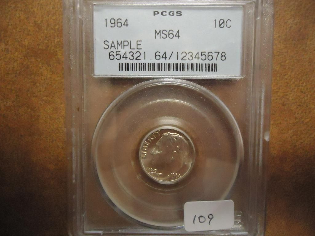 1964 ROOSEVELT DIME PCGS MS64 SAMPLE SLAB