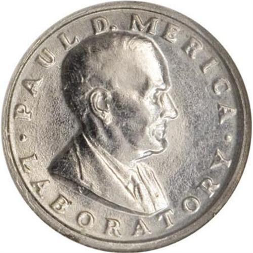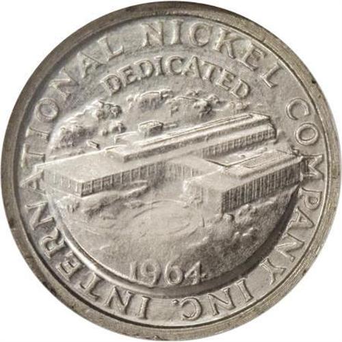 <B>1964 Reeded Edge "Dime" Pattern, Unlisted in Judd, Pollock-5335, Unknown Rarity, MS63 NGC. </B></I> 2.24 gms. Struck by International Nickel Company. Mislabeled on the insert as Pollock-5353, an obvious transposition of the last two digits as the 5353 is a quarter pattern. The obverse features a bust of Dr. Paul D. Merica and the reverse features his laboratory where the pieces were struck. The design was created by Gilroy Roberts and the hubs were created by the Medallic Art Company. Struck in 95% nickel, 5% silicon on a permalloy core of 79% nickel, 16% iron and 5% molybdenum. Mostly brilliant, some striking weakness is seen at the top of the digits in the date. <BR><BR><BR><b>Shipping:</b> Coins & Currency (<a target="_blank" href="http://www.heritageauctions.com/common/shipping.php">view shipping information</a>)