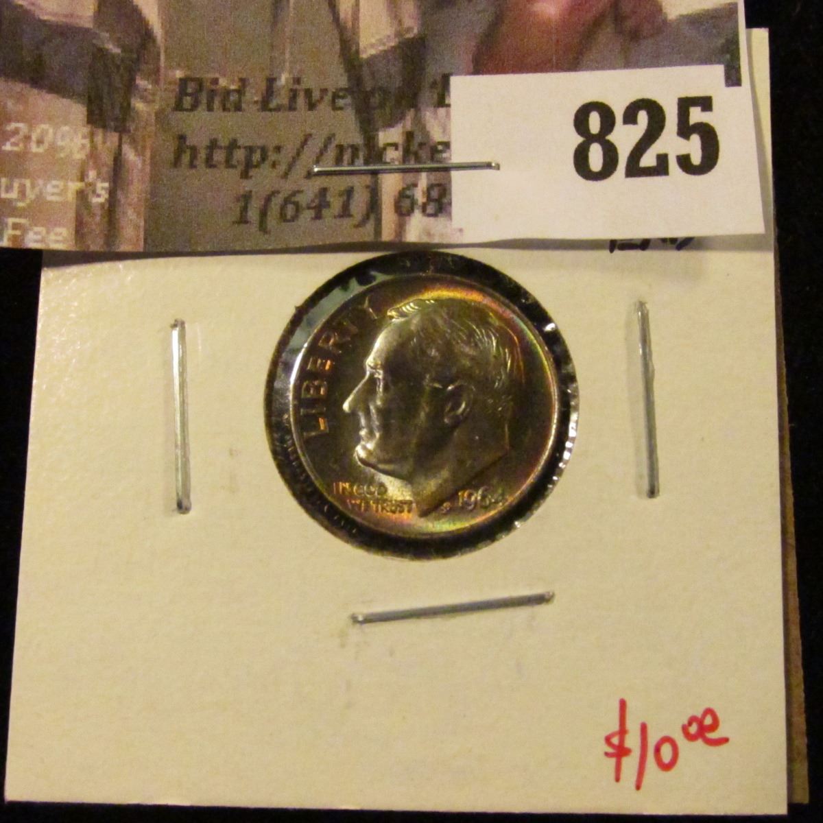 1964 Roosevelt Dime, BU RAINBOW BULLSEYE TONED, awesome eye appeal, roll end coin, value $10+
