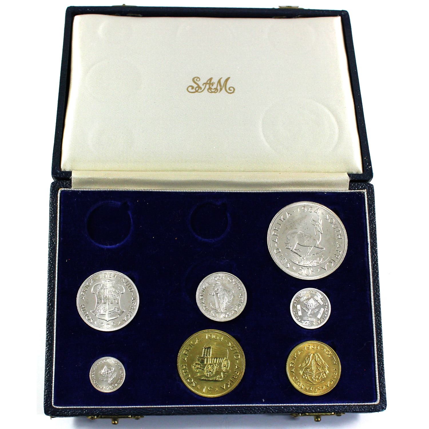 1964 South Africa Short Proof Set with 7 of 9 Coins in Original South Africa Mint Display Case. Very nice looking coins!