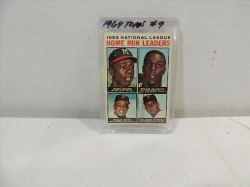 1964 TOPPS #9 BASEBALL RUN LEADER CARD. AARON, MCCOVEY, MAYS & CEPEDA. AS SHOWN. VIEW PICTURE FOR DETAIL.