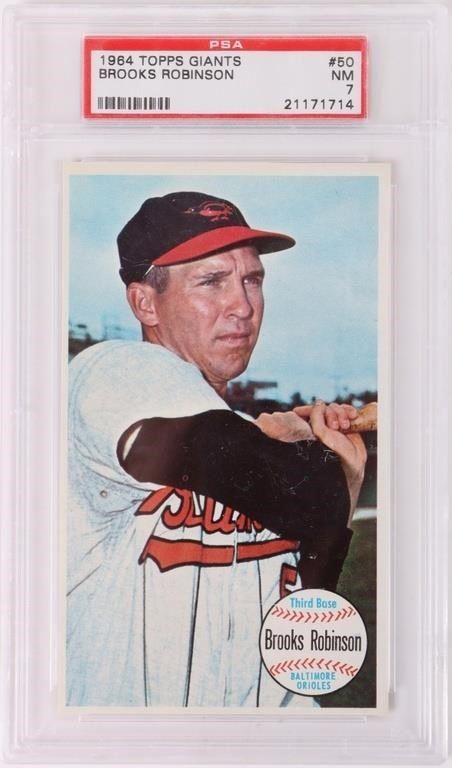 1964 Topps Giants PSA graded baseball card lot to include one #29 Frank Robinson NM-MT 8 & one #50 Brooks Robinson NM 7.