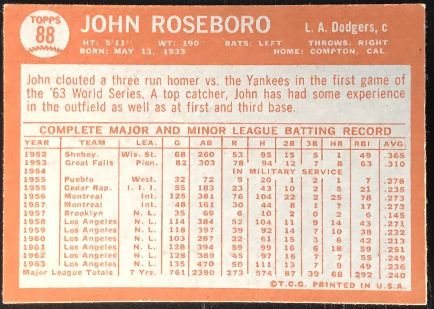 Card #88 vintage, MLB, baseball
