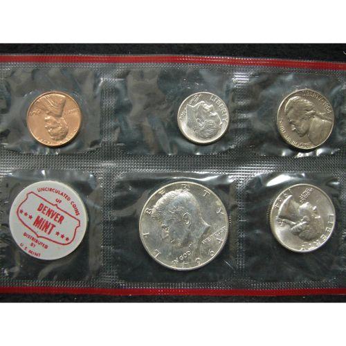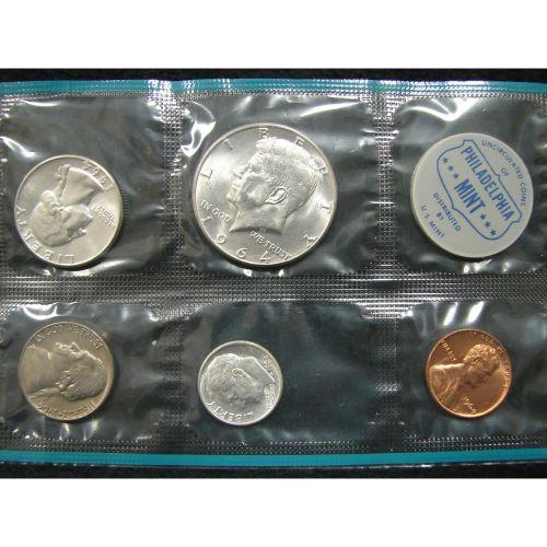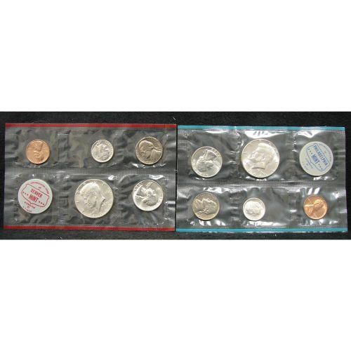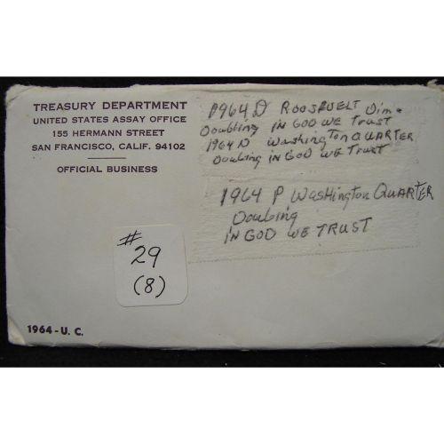 1964 U.S. MINT SET. Consists of Philadelphia & Denver sets. Double die on obverse of Denver Roosevelt dime & Washington quarter, and on obverse of Philadelphia Washington quarter. In original Treasury Department envelope.