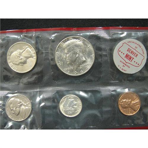 1964 U.S. MINT SET. Consists of Philadelphia and Denver sets. With Treasury Department envelope.