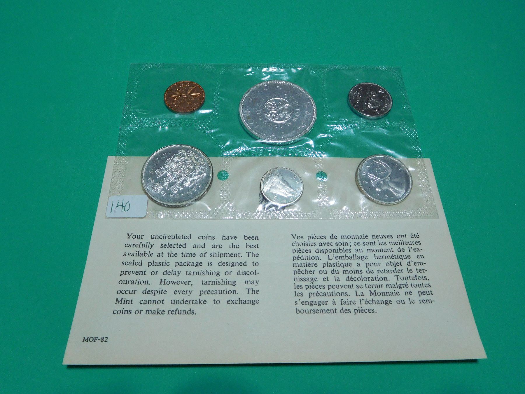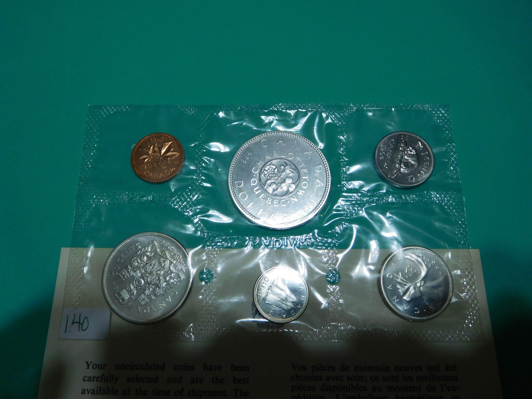 1964 Uncirculated Set of Canada Coins - 6 Coins include Penny, Nickle, Dime, Quarter, 50 Cents & Dol