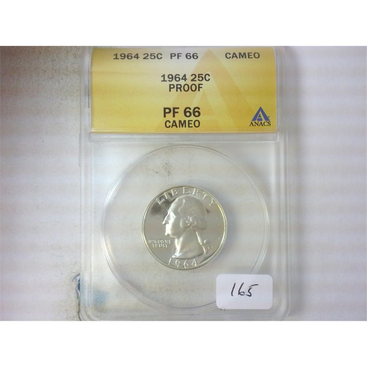 1964 WASHINGTON QUARTER ANACS PF66 CAMEO