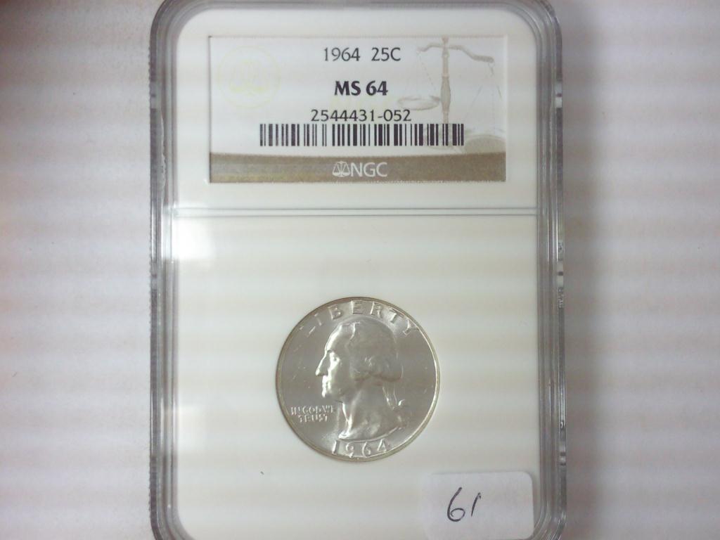 1964 WASHINGTON SILVER QUARTER NGC MS64