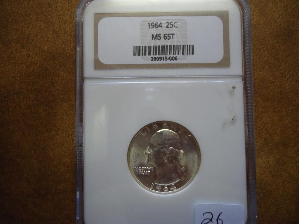 1964 WASHINGTON SILVER QUARTER NGC MS65 T