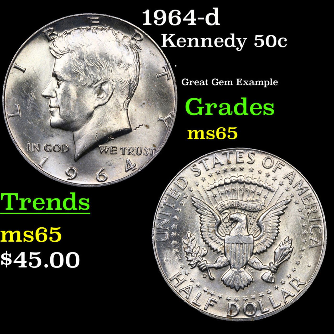 1964-d Kennedy Half Dollar 50c Grades GEM Unc.