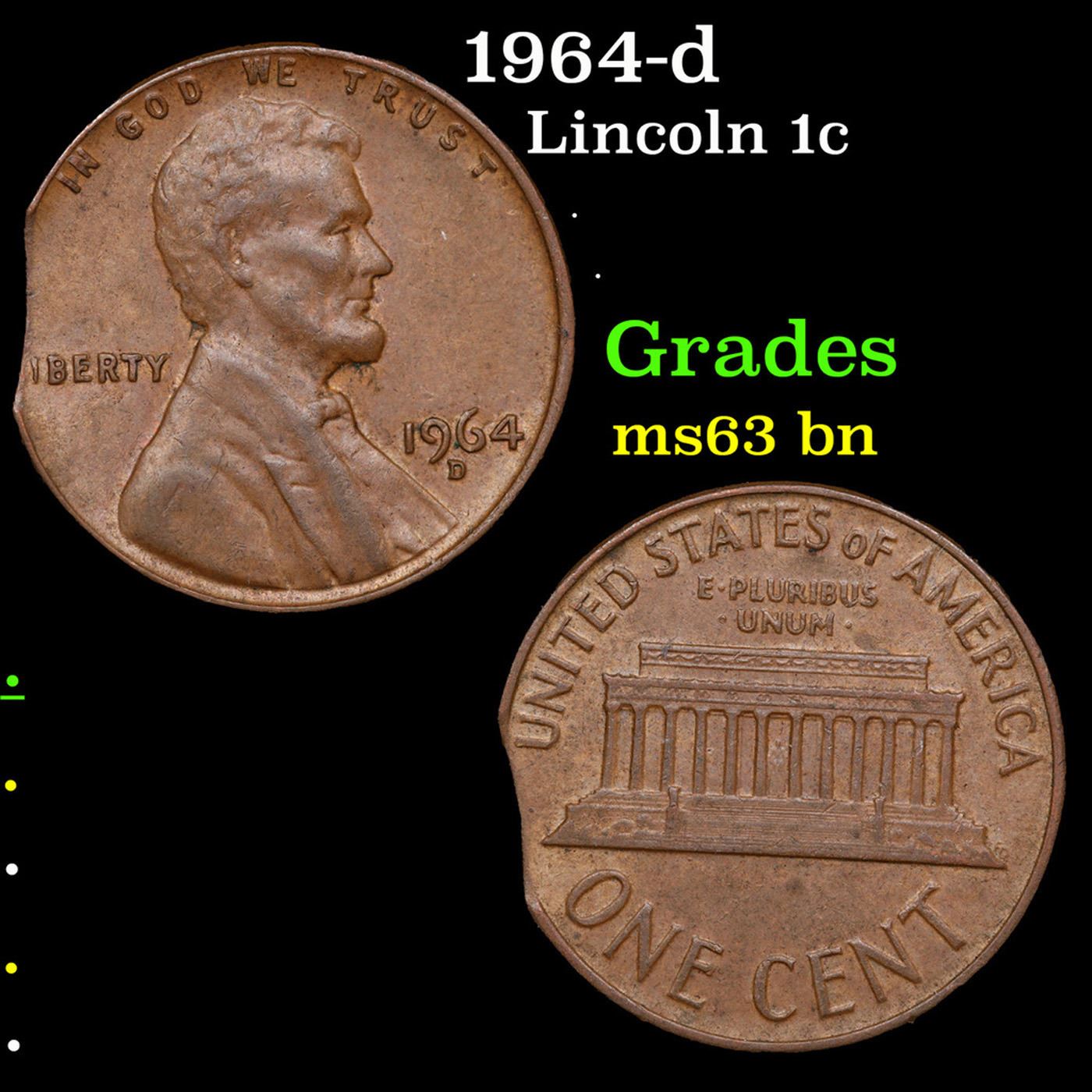 1964-d Lincoln Cent Mint Error, Clipped planchet 1c Grades Select Unc BN