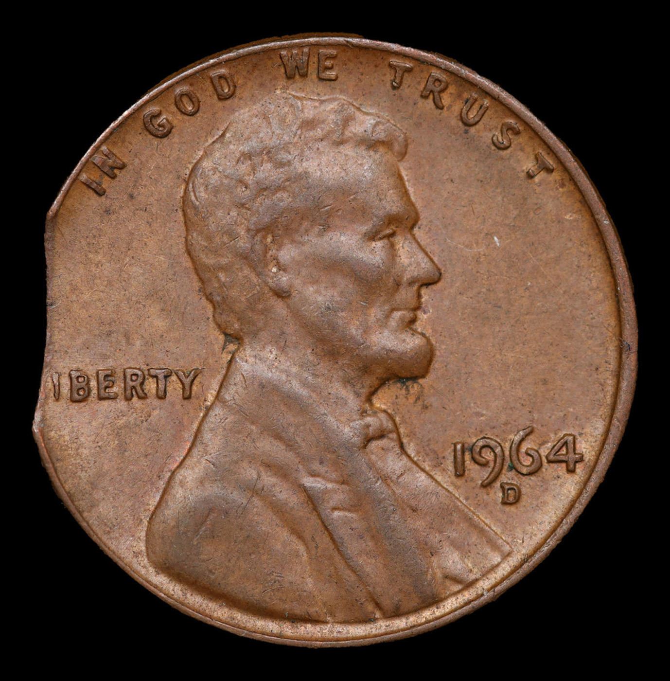 1964-d Mint Error, Clipped planchet Lincoln Cent 1c Grades Select Unc BN.