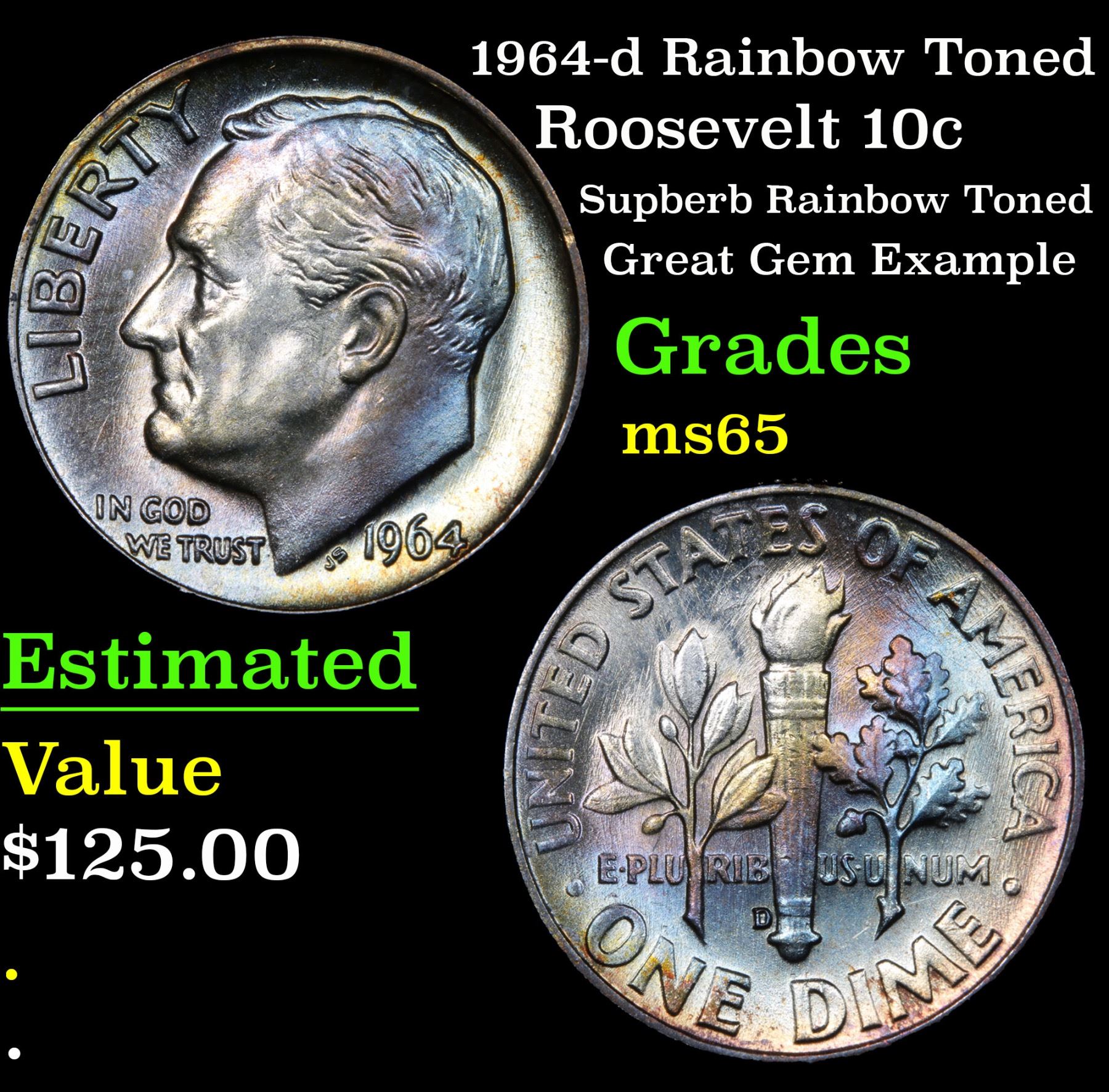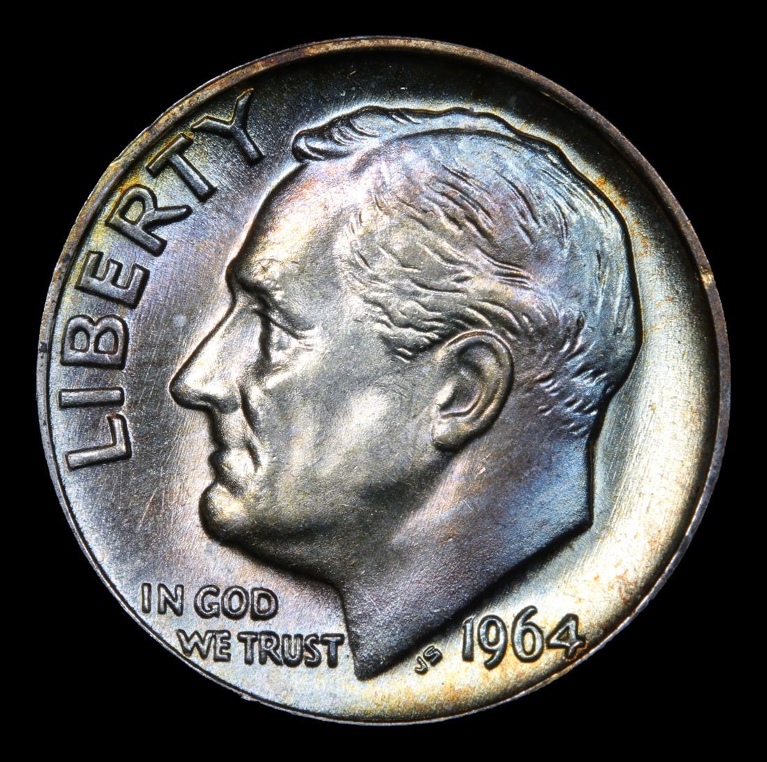 1964-d Rainbow Toned Roosevelt Dime 10c Grades GEM Unc. Supberb Rainbow Toned Great Gem Example A Corey's Pick