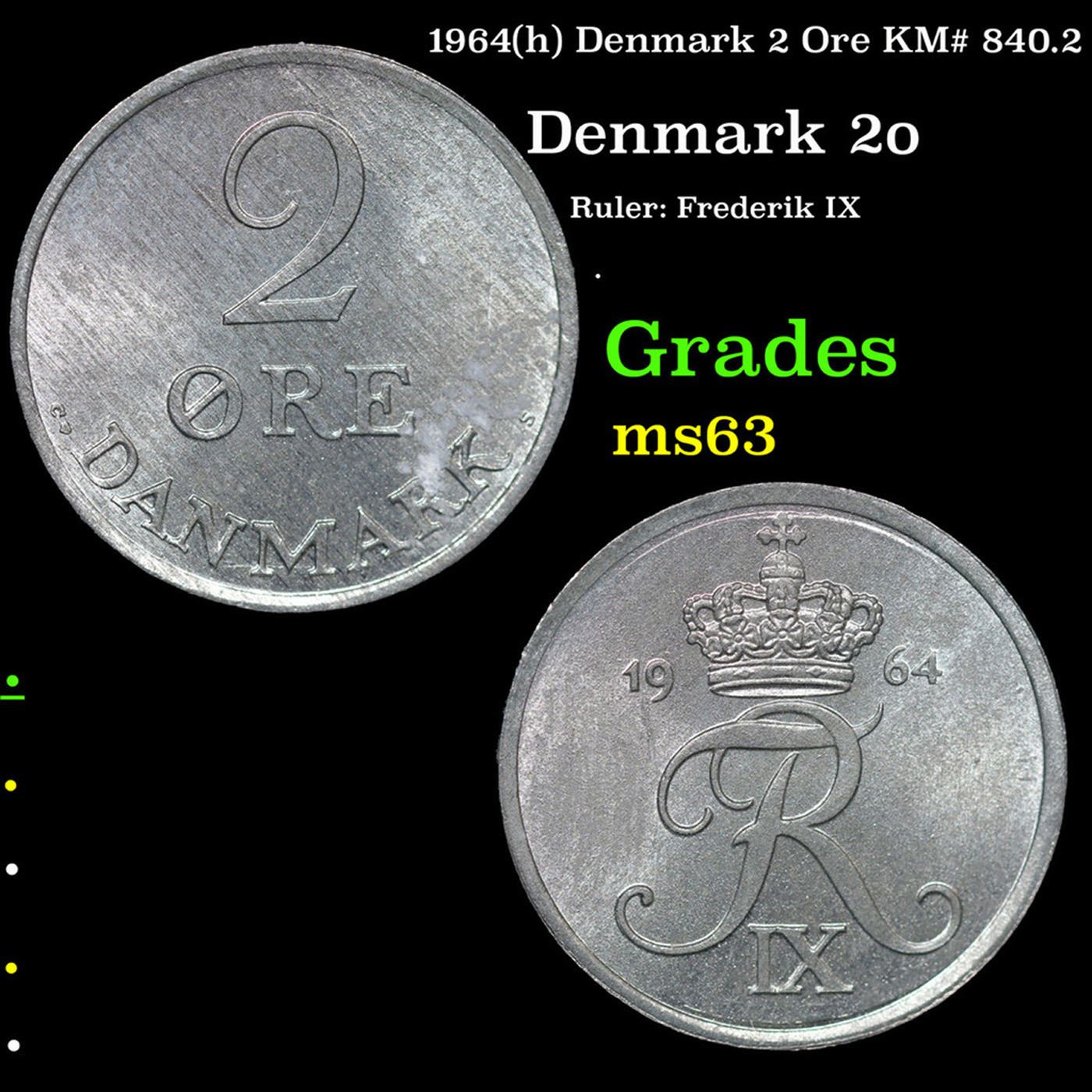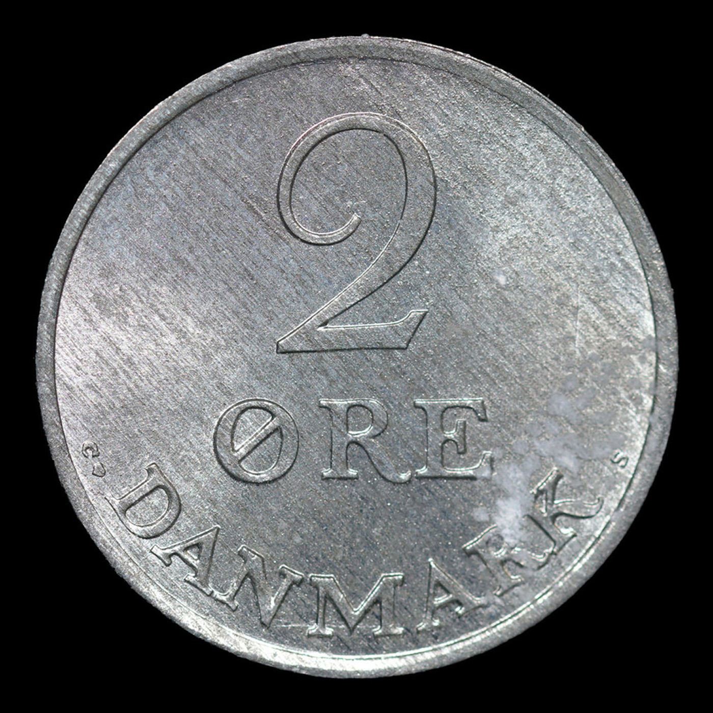 1964(h) Denmark 2 Ore KM# 840.2 Grades Select Unc.
