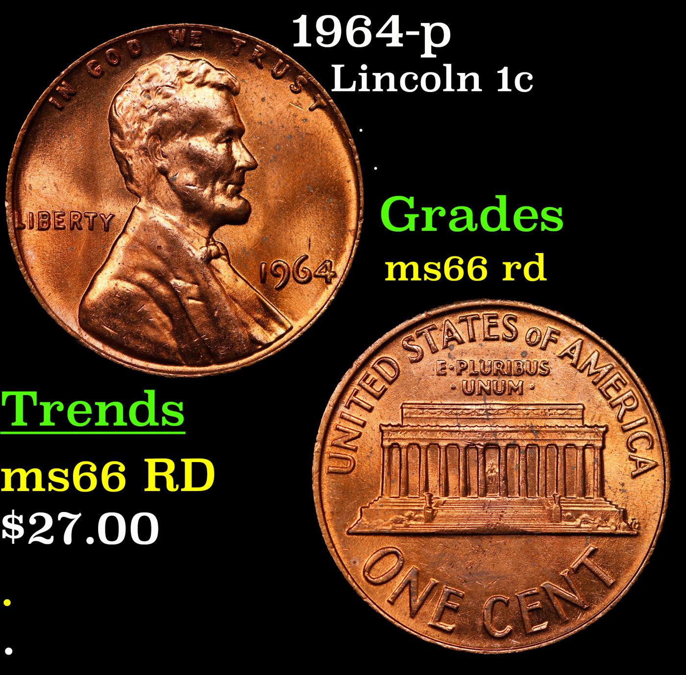 1964-p Lincoln Cent 1c Grades GEM+ Unc RD.