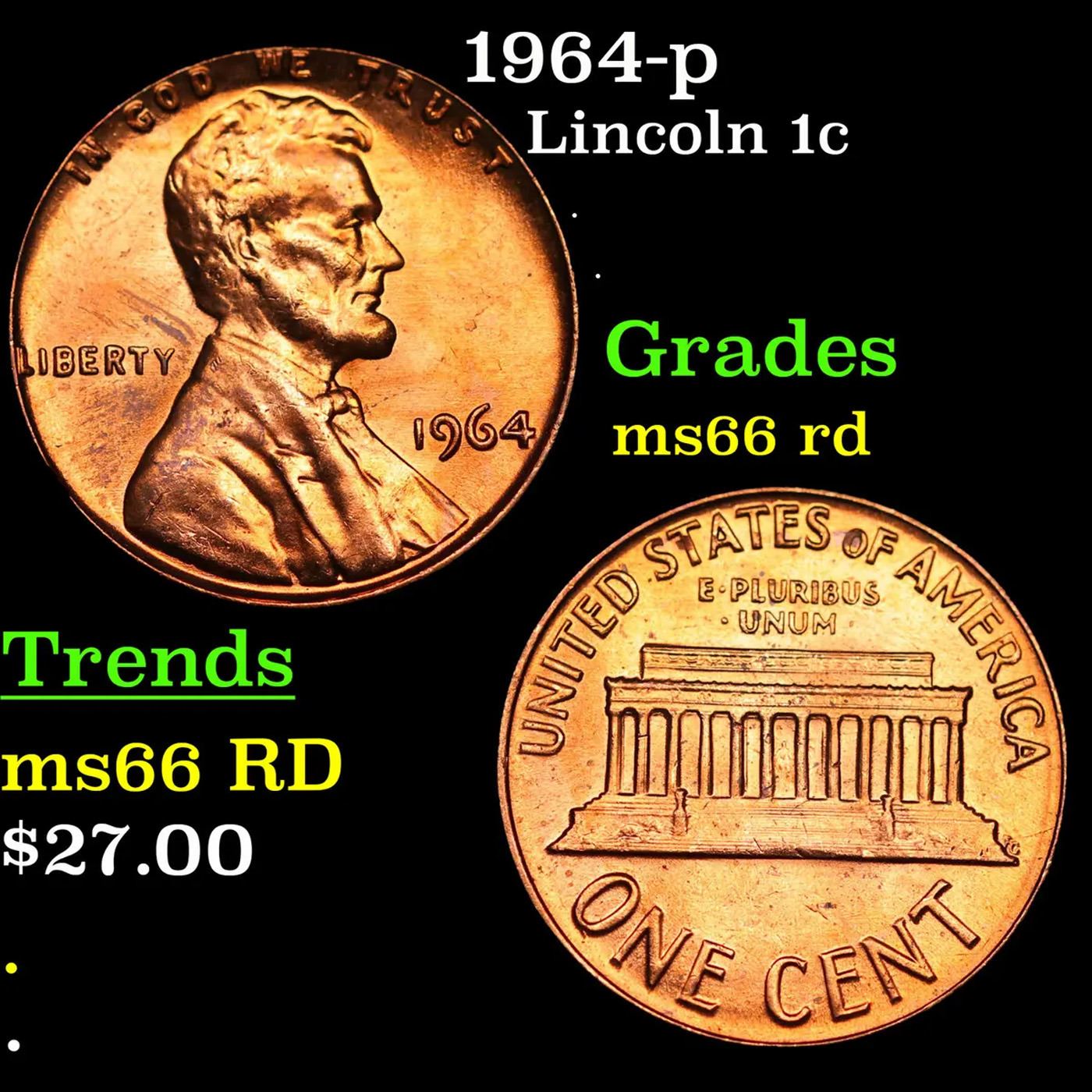 1964-p Lincoln Cent 1c Grades GEM+ Unc RD.